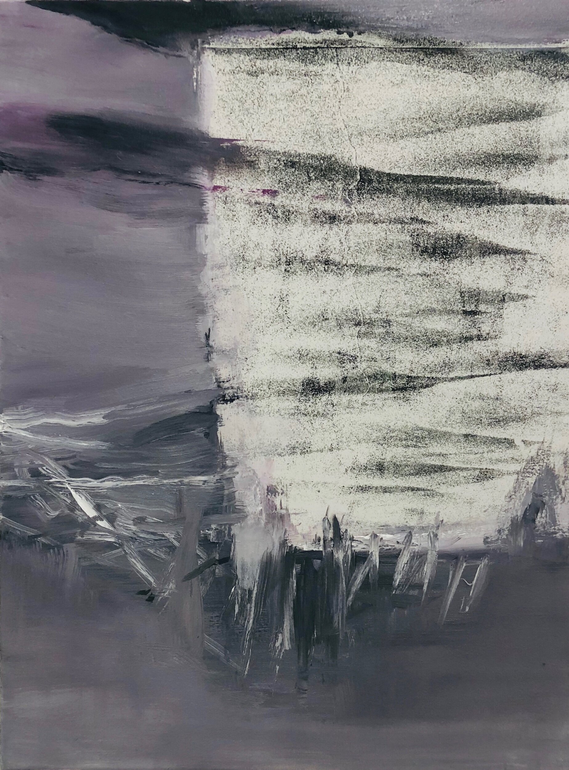 Research and experimentation are ongoing in my practice, and I seek a responsive spontaneity in the process. Making paintings reminds me, as a child of playing in a rock pool at the beach. Each painting is like a pool, with its own mysterious dynamics. A reflective depth of space in which to explore the possibilities of paint. A place in which I want to ruffle its dimensions with splashes of contradiction or randomness. I seek to produce work that feels like it just happened and yet engages slower looking.